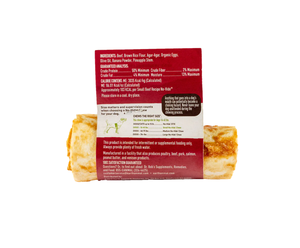Earth Animal Beef No-Hide® Wholesome Chews are the healthy, hand-rolled alternative to rawhide! Each chew delivers a delicious, long-lasting chewable bliss to dogs of all shapes. We call it No-Hide® Nirvana!