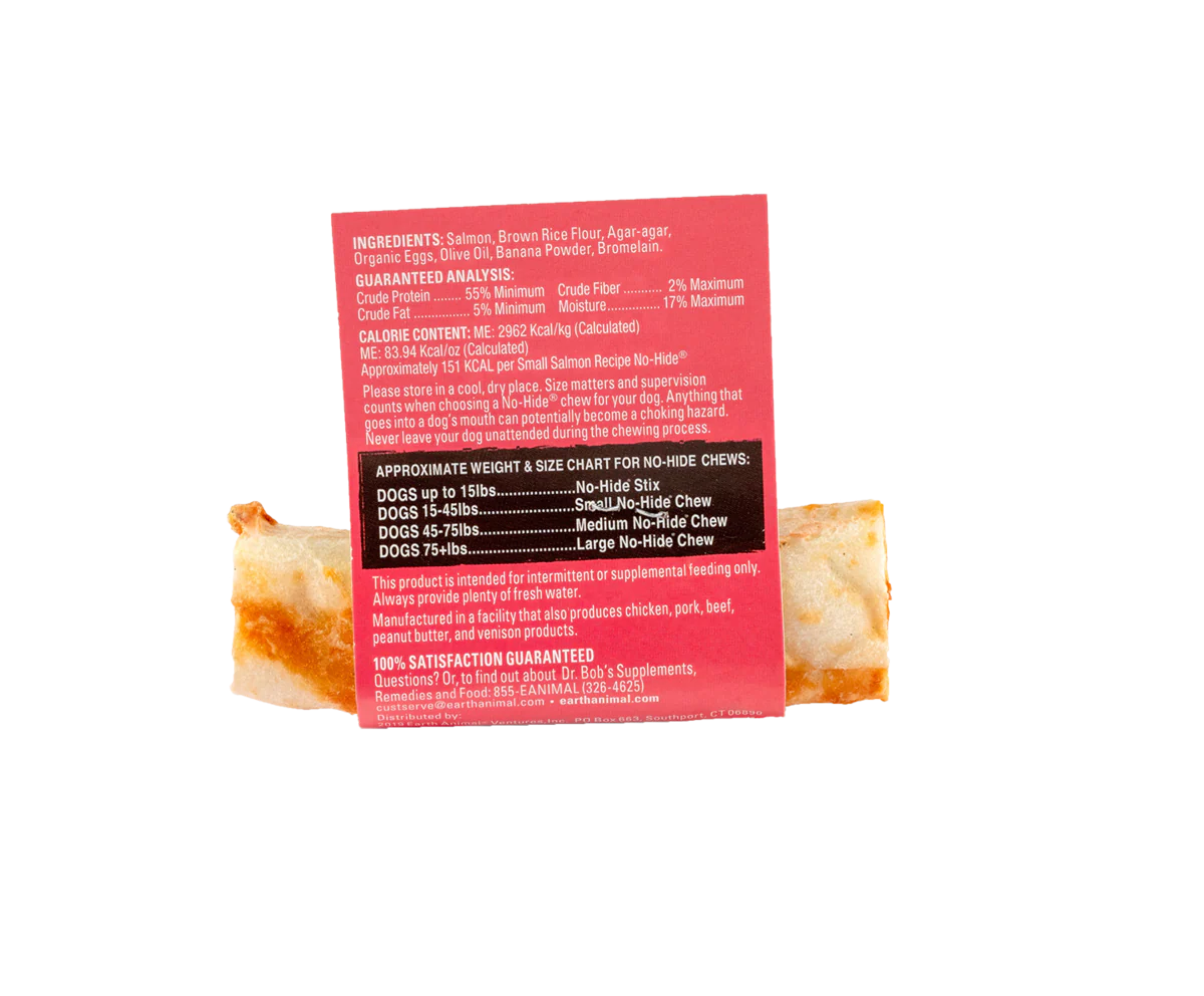 Earth Animal Salmon No-Hide® Wholesome Chews are the healthy, hand-rolled alternative to rawhide! Each chew delivers a delicious, long-lasting chewable bliss to dogs of all shapes. We call it No-Hide® Nirvana!