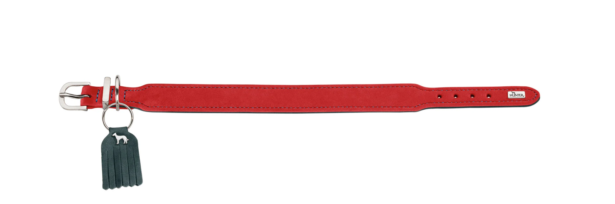 The gentle dyeing process preserves the unique character of the leather, while the decorative stitching creates colourful highlights and turns the collar into understated stylish luxury.