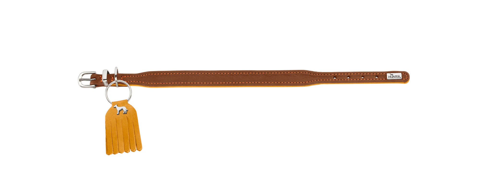 The gentle dyeing process preserves the unique character of the leather, while the decorative stitching creates colourful highlights and turns the collar into understated stylish luxury.